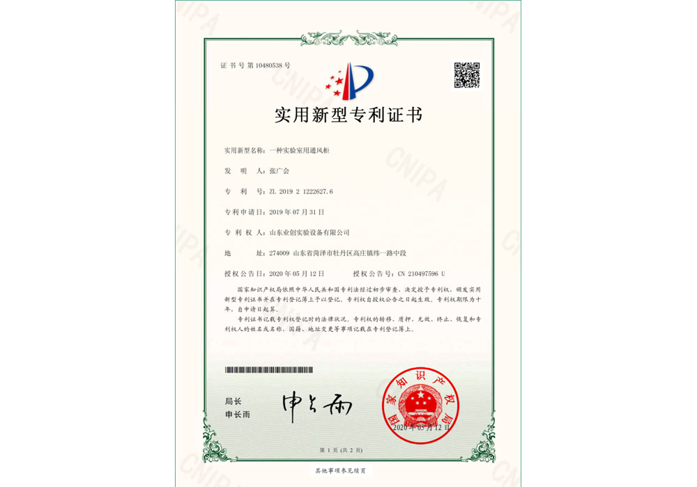- 山東業(yè)創(chuàng)榮獲《實(shí)用新型專(zhuān)利證書(shū)》(1) 10-20